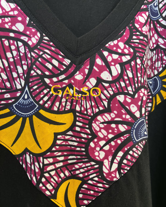 T-shirt en V avec Tissu Wax